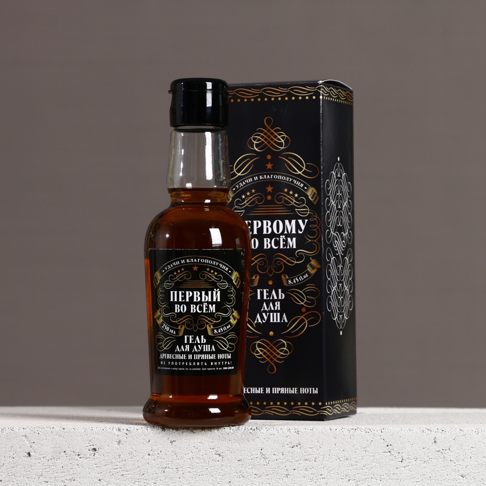 Гель для душа коньяк «Первому во всём», 250 мл, аромат древесный с пряными нотами, Чистое счастье
