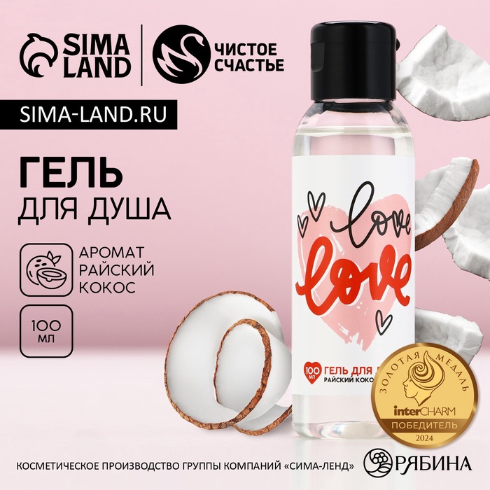Гель для душа Love, 100 мл, аромат кокоса, Чистое счастье