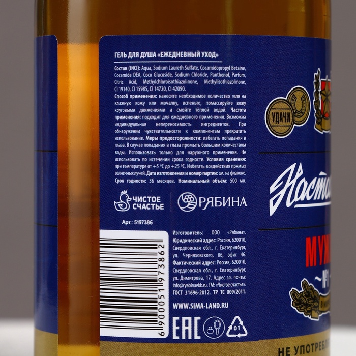 Гель для душа пиво «Настоящий», 500 мл, аромат можжевельника и чёрного кедра, Чистое счастье