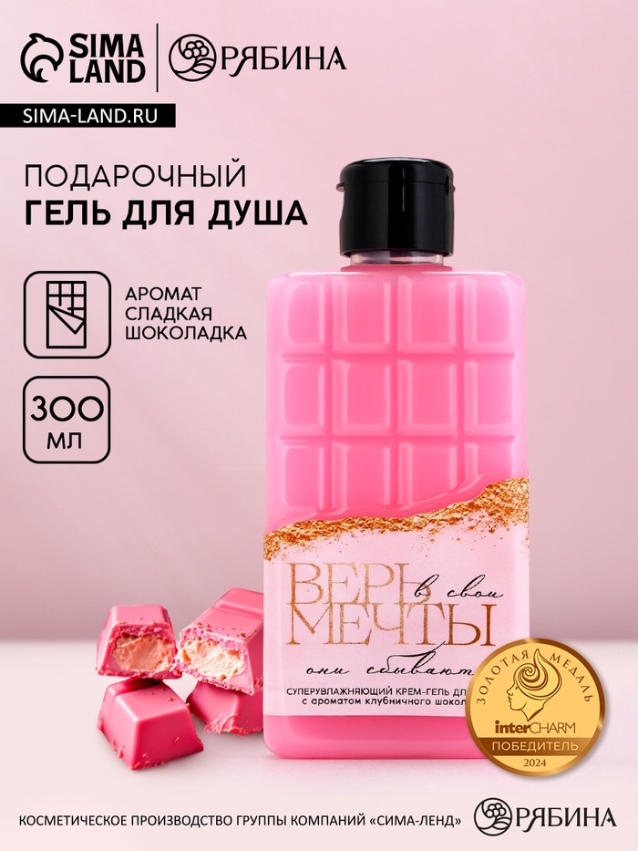 Гель для душа «Верь в мечты», 300 мл, аромат клубничного шоколада, Чистое счастье