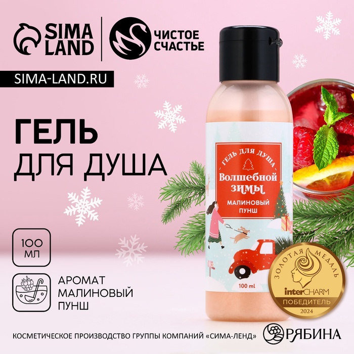 Гель для душа «Волшебной зимы», 100 мл, аромат малиновый пунш, Чистое счастье