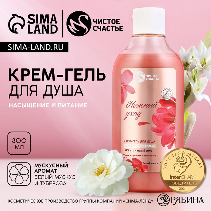 Гель для душа женский «Нежный уход», 300 мл, аромат мускуса, Чистое счастье