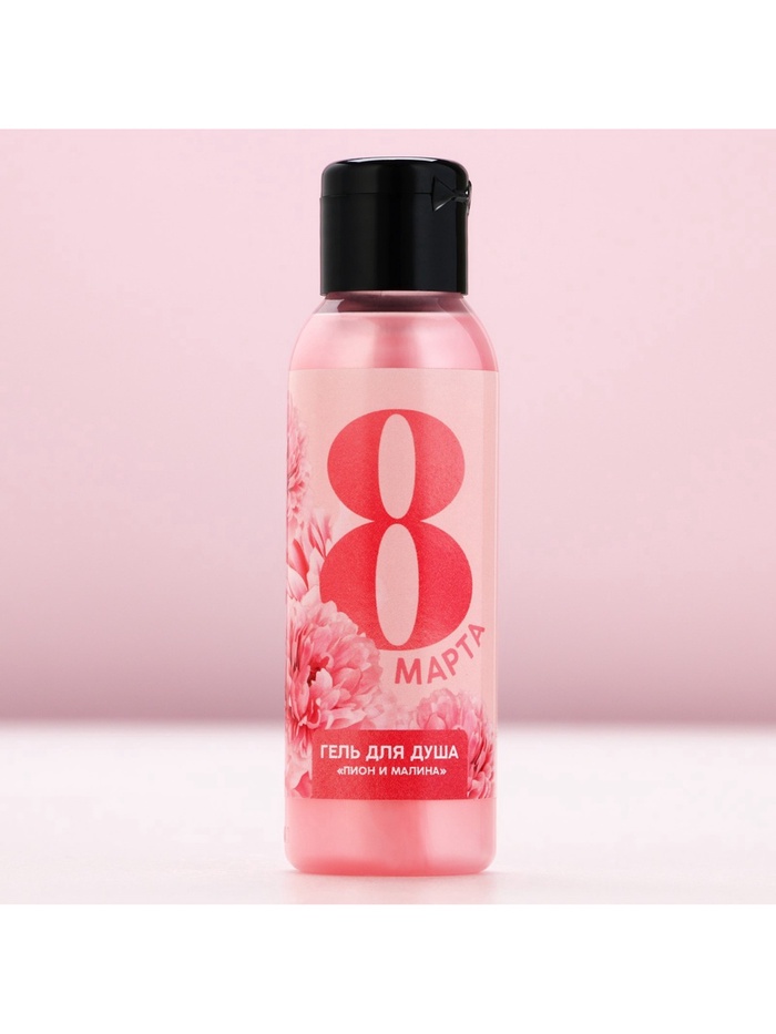 Гель для душа женский «С 8 Марта!», 100 мл, аромат пиона и малины, Чистое счастье