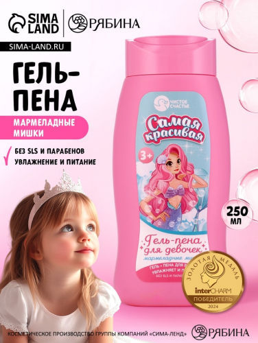 Гель-пена для девочек «Самая красивая», аромат мармеладные мишки, 250 мл, Чистое счастье