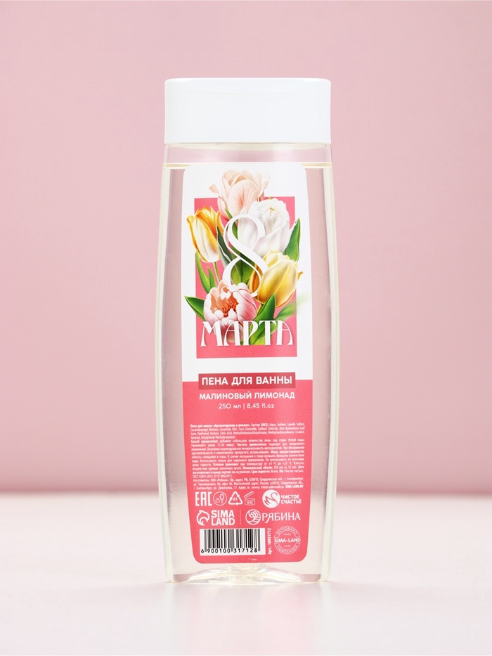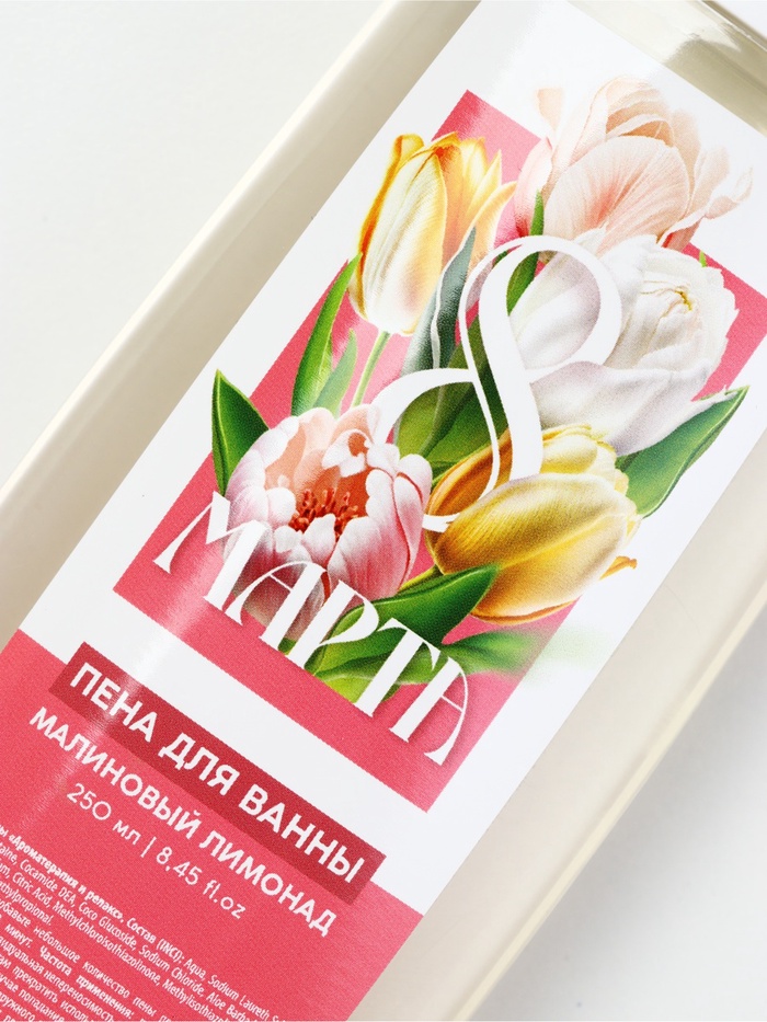 Пена для ванны «С 8 Марта!», 200 мл, аромат малинового лимонада, МИКС, Чистое счастье