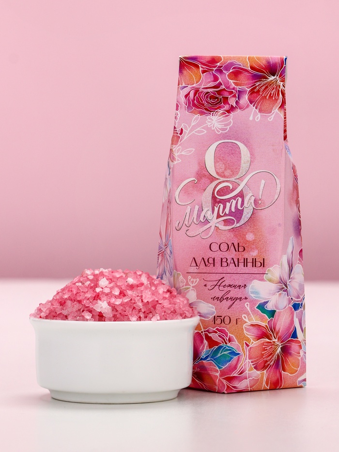 Соль для ванны «С 8 марта», 150 г, аромат нежная лаванда