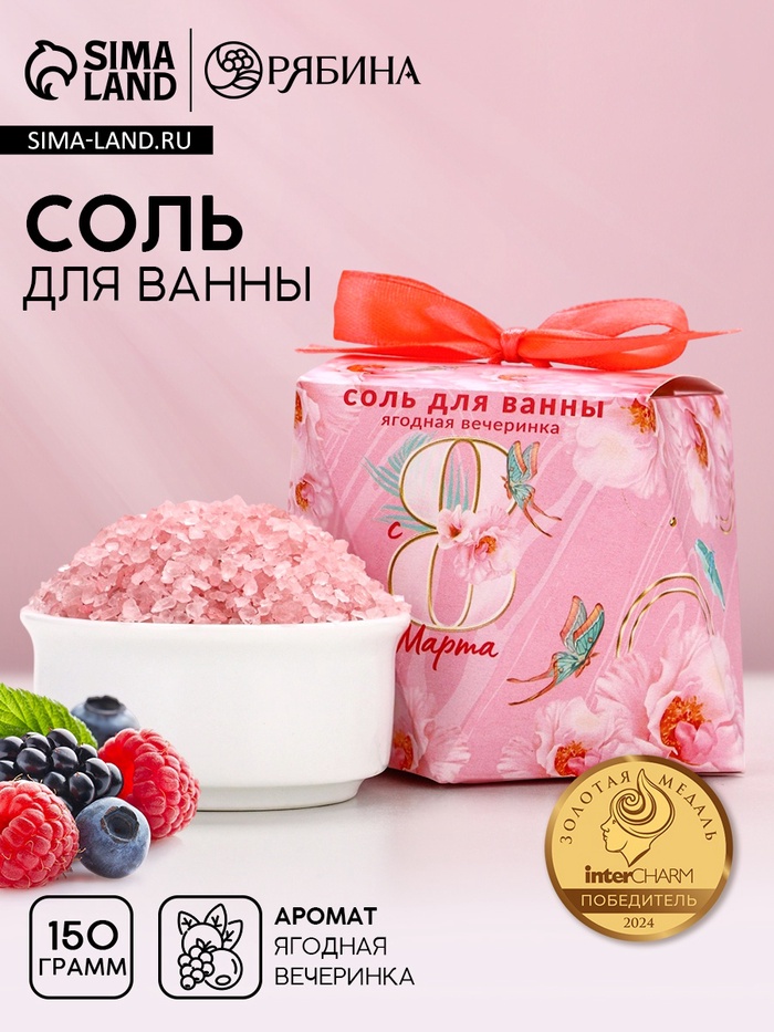 Соль для ванны «С 8 Марта!», 150 г, аромат ягод, Чистое счастье