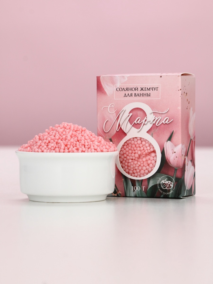 Соляной жемчуг для ванны 100 г «С 8 марта!», ягодный аромат, Чистое счастье