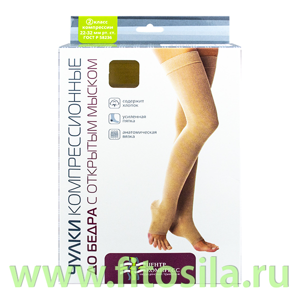 Чулки компрессионные до бедра с открытым мыском (II класс компрессии, Типоразмер № 4).ПАРА Цвет - кремовый Артикул - Ч2(п)-К