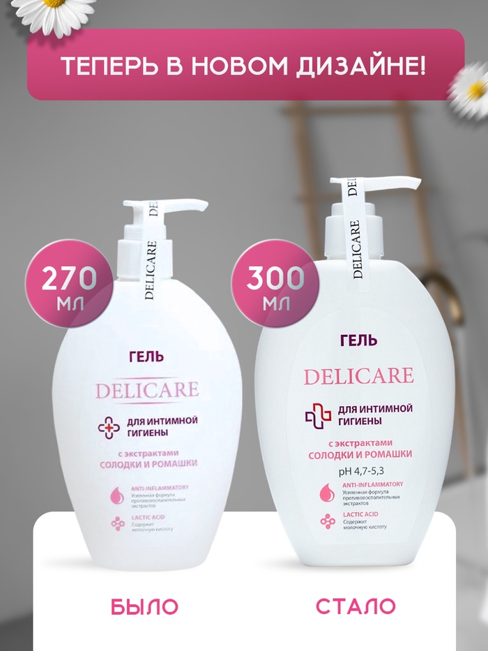 Гель для интимной гигиены Delicare с экстрактами корня солодки и ромашки, 300 мл