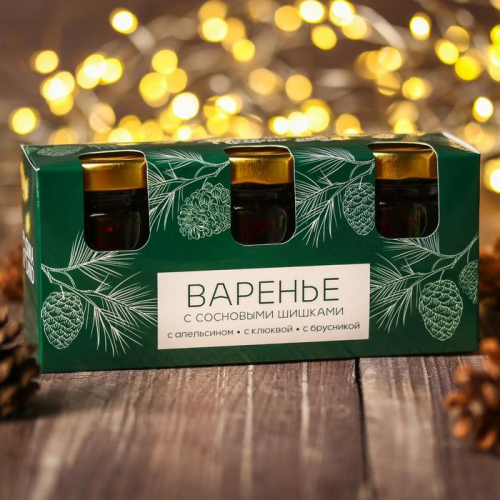 Варенье с сосновыми шишками «Новый год: С любовью»: апельсин, классический, брусника, 90 г (3 шт.×30 г).