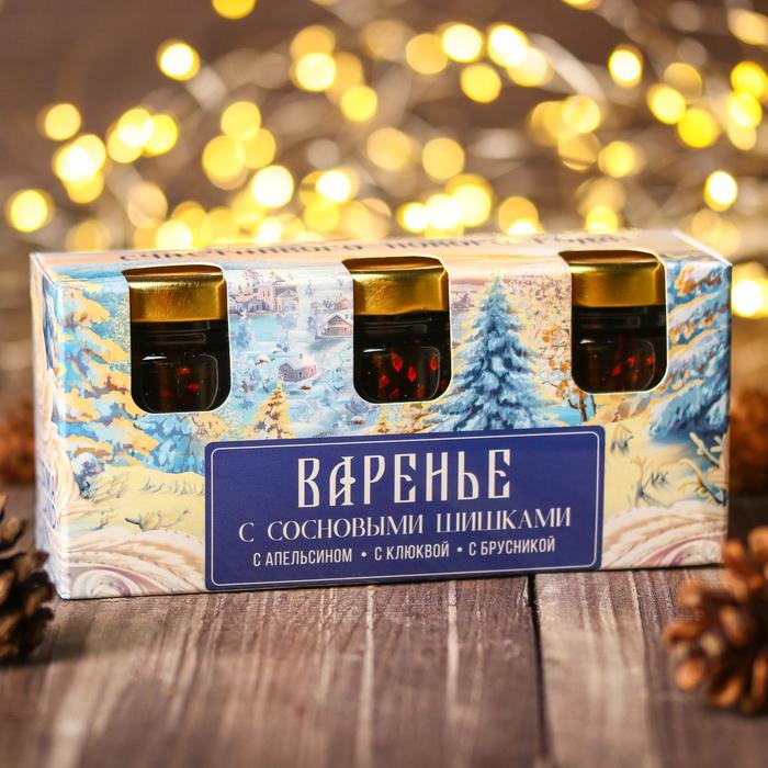 Варенье с сосновыми шишками «Счастливого нового года»: апельсин, клюква, брусника, 90 г (3 шт.×30 г).