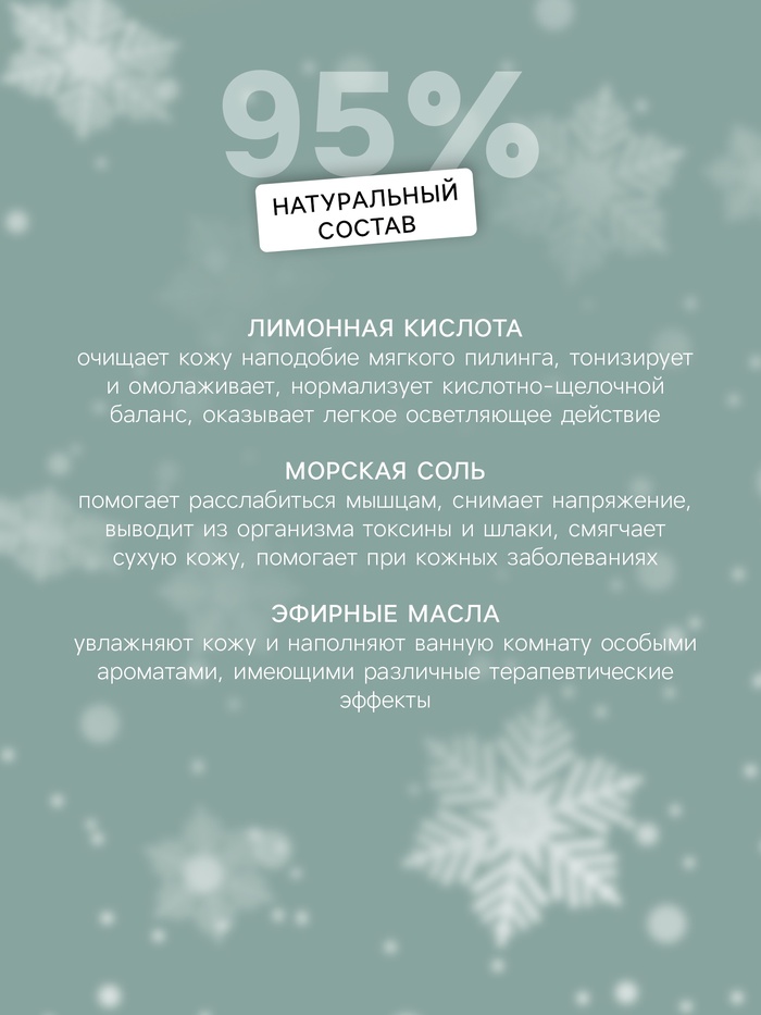 * Эфирные масла увлажняют кожу и наполняют ванную комнату особыми ароматами, имеющими различные терапевтические эффекты. В зависимости от вашей задачи ароматная бомбочка может успокаивать или наполнять энергией, повышать настроение или улучшать сон, снимать напряжение или пробуждать чувственность.