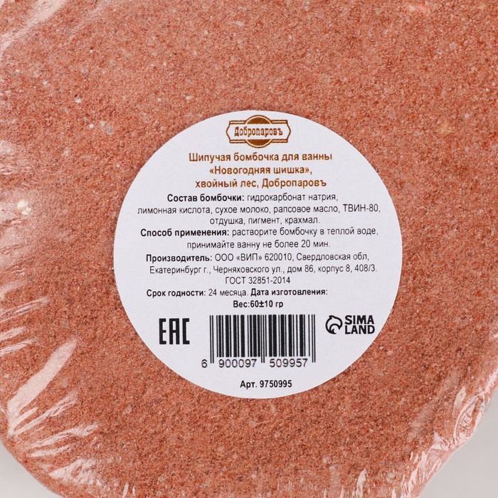 Бомбочка для ванн «Новогодняя шишка» аромат хвойного леса, 50 г