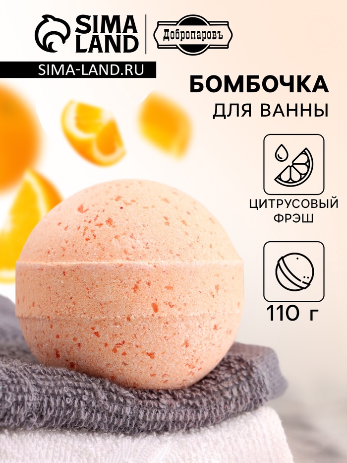 Бомбочка для ванн Добропаровъ с морской солью «цитрусовый ФРЕШ» 110 г