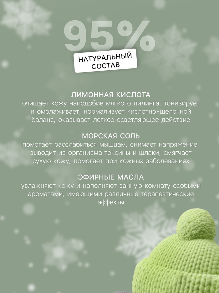 * Морская соль помогает расслабиться мышцам, снимает напряжение, выводит из организма токсины и шлаки, смягчает сухую кожу, помогает при кожных заболеваниях.
