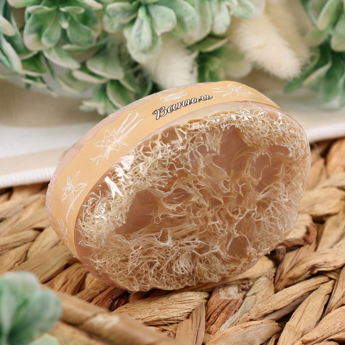 Мыло с люфой одновременно очищает кожу и скрабирует её. Это натуральное экологичное средство гигиены не вызывает аллергии.