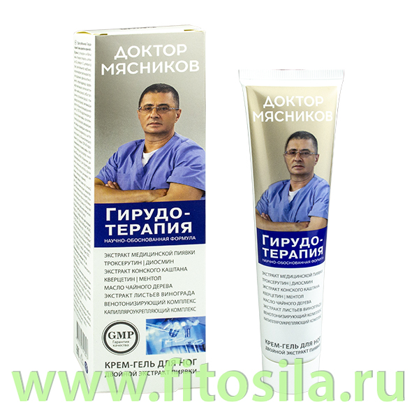 Александр Леонидович Мясников Российский врач в четвертом поколении. Компетентность его советов не вызывает сомнений, так как за его плечами огромный опыт работы в РФ и за границей, а также обширная медицинская практика. Совместно с ним разработана серия кремов для ног: Гирудотерапия, Вены без проблем, Тяжесть отеки ног, Судороги ног.
