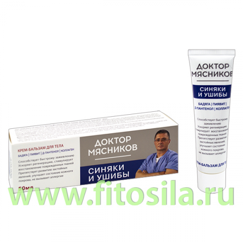 Доктор Мясников Бадяга. Пиявит. Д-пантенол. Коллаген (Синяки и ушибы) крем-бальзам/тела 50мл