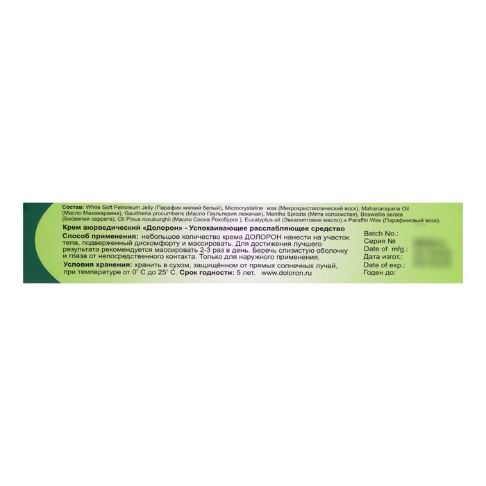 Мазь для лечения заболеваний суставов, мышц и связок, относящихся к самым распространенным заболеваниям человечества определенных понятием «ревматические заболевания». Самые популярные ревматические заболевания: артроз (изменение суставов), и артрит (воспаление суставов), такие заболевания как ревматизм, подагра, мышечный ревматизм. Мазь Долорон для суставов, известная с древних времен, включенная в аюрведические справочники, приготовленная из натуральных масел и трав обладает мощным лечебным эффектом с согревающими свойствами. Применяется для лечения суставных и мышечных болей.
