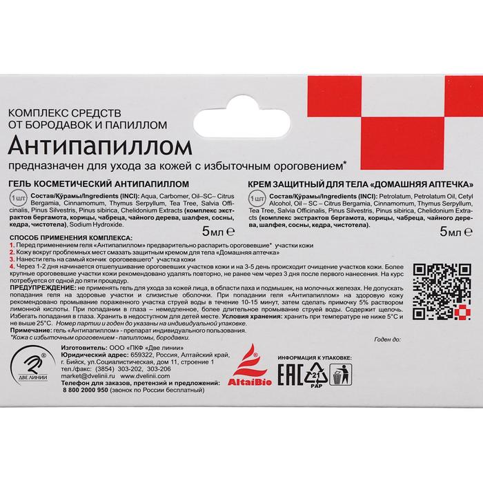 Комплекс средств Антипапиллом гель 5 мл + крем защитный 5 мл