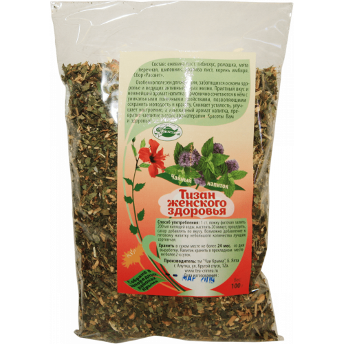Этот чайный напиток особенно полезен для женщин, заботящихся о своем здоровье и ведущих активный образ жизни. Приятный вкус и нежнейший аромат напитка гармонично сочетаются в нем с уникальными полезными свойствами, позволяющими сохранить молодость и красоту. Снимает усталость, улучшает настроение, а изысканный аромат напитка превратит чаепитие в сеанс ароматерапии. Красоты Вам и здоровья! Состав: ежевика лист, гибискус, ромашка, мята перечная, шиповник, крапива лист, корень имбиря. Способ употребления: 1 ст. ложку фиточая залить 200 мл кипящей воды, настоять 20 минут, процедить, сахар добавлять по вкусу. Возможно добавление к напитку лучших сортов чая.