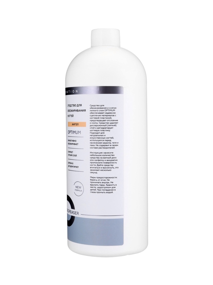 ESTELICA PROFESSIONAL OPTIMUM «Ангел», средство для обезжиривания и снятия липкого слоя 1000 мл — профессиональное средство, обеспечивающее надёжное сцепление материалов с ногтевой пластиной и предотвращающее сколы и отслоения покрытия. Эффективно удаляет дисперсионный (липкий) слой и дегидратирует ногтевую пластину, делая его идеальным для работы с натуральными и искусственными ногтями перед нанесением акрила, геля или лака.