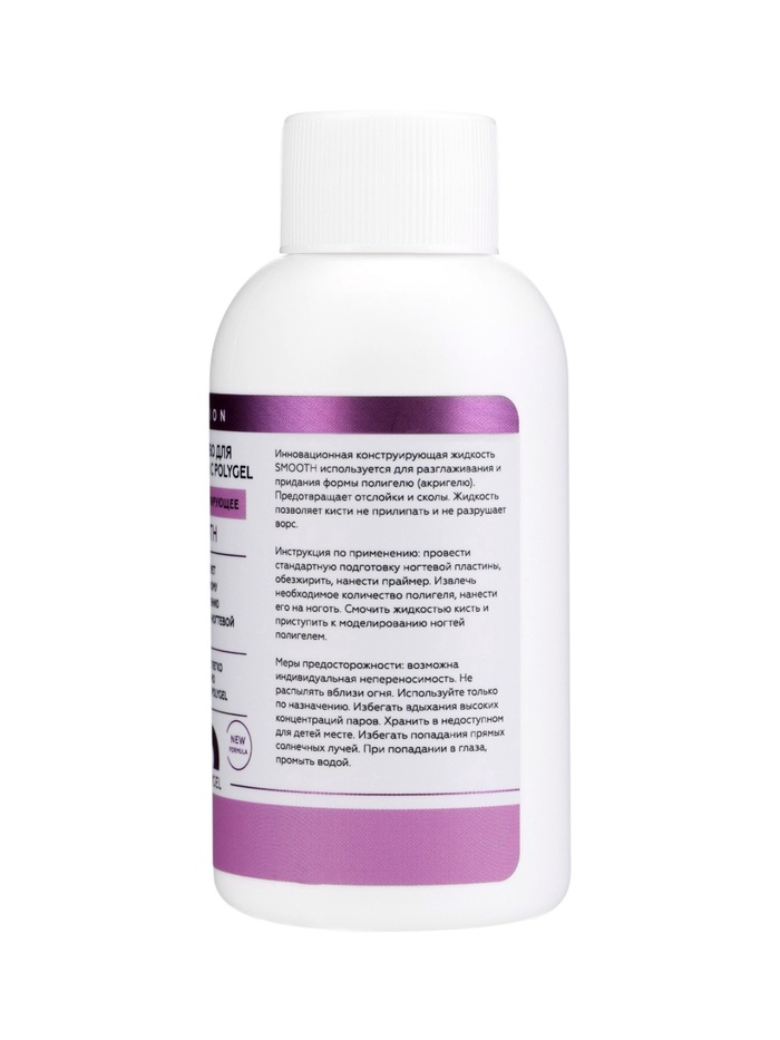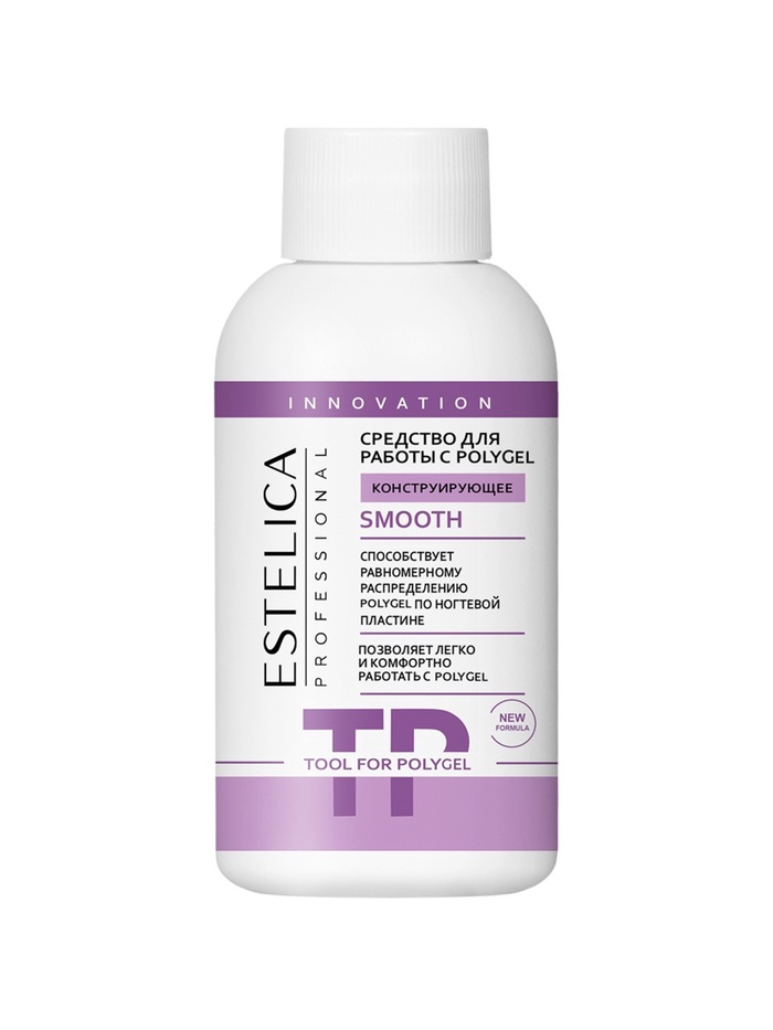 ESTELICA PROFESSIONAL SMOOTH, конструирующая жидкость для полигеля 100 мл — инновационная жидкость, предназначенная для разглаживания и придания формы полигелю (акригелю) при моделировании ногтей. Средство предотвращает сколы и отслойки, обеспечивает лёгкое скольжение кисти, не повреждая её ворс.