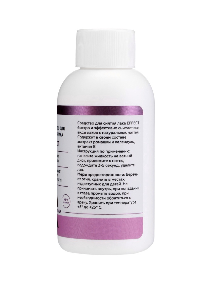 Способ применения: смочите ватный диск средством, приложите к ногтю на 3–5 секунд и аккуратно удалите лак. При необходимости повторите.