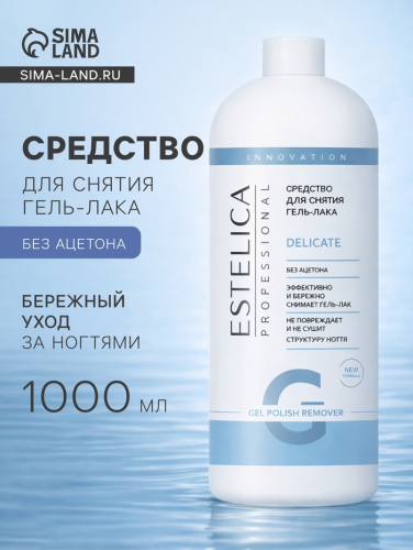 ESTELICA PROFESSIONAL DELICATE, средство для снятия лака 1000 мл — профессиональное деликатное средство, предназначенное для мягкого и эффективного удаления всех видов лаков с натуральных ногтей. Формула бережно ухаживает за ногтевой пластиной и кожей вокруг ногтей, предотвращает пересушивание и сохраняет естественный блеск ногтей.