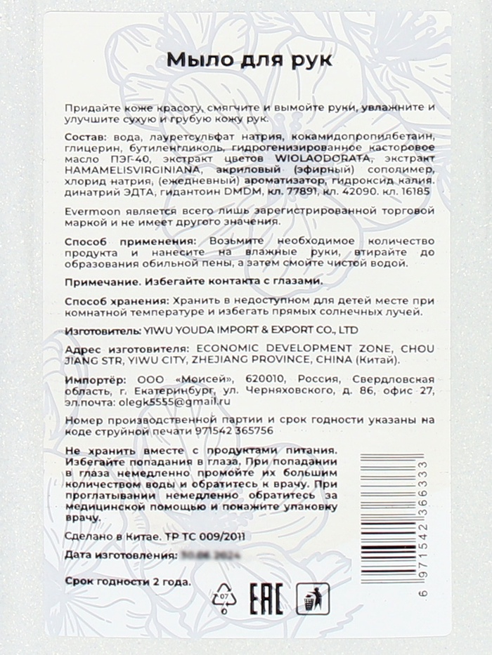 Блестящее жидкое мыло Evermoon Гиацинт, с шиммером, 500 мл