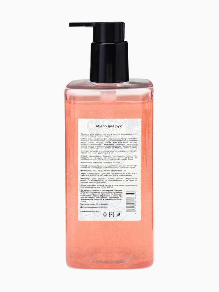 Шиммер в составе мыла придаёт коже лёгкое мерцание, делая её гладкой и сияющей. Уникальный дизайн флакона и стильный дозатор обеспечивают удобство использования и сохраняют свежесть продукта на долгое время.