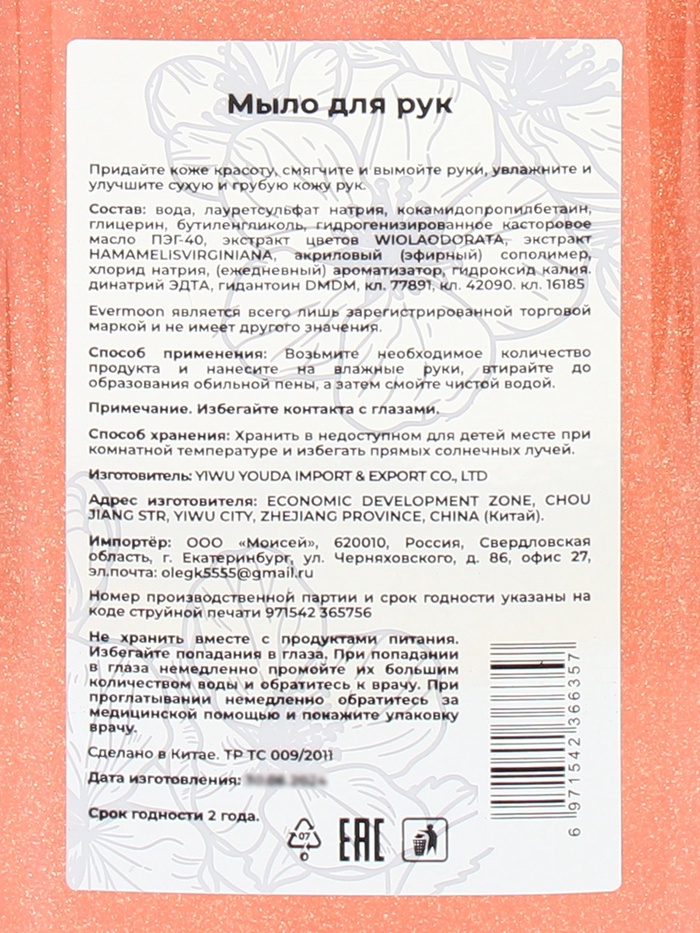 Блестящее жидкое мыло Evermoon Вишня, с шиммером, 500 мл