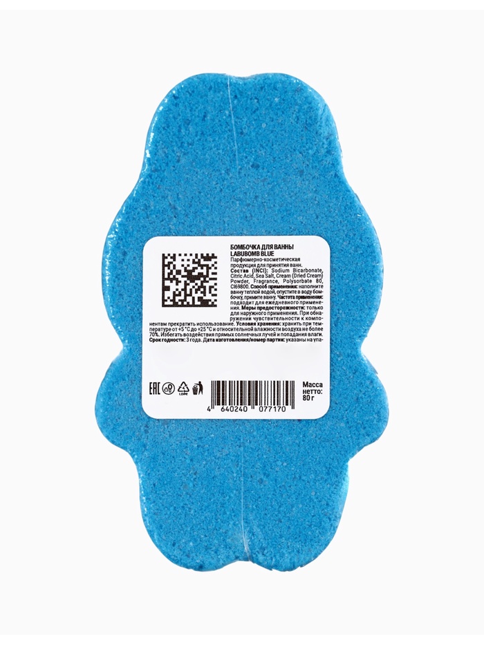 Бомбочка для ванн LabuBomb синяя, 80 г — это глубокое погружение в атмосферу спокойствия, свежести и внутренней гармонии.