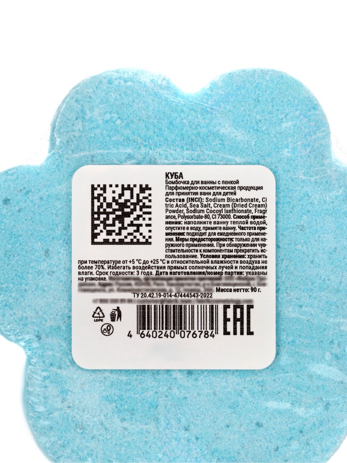 (Бикарбонат натрия, лимонная кислота, морская соль, сливки сухие, содиум кокоил изетионат, отдушка, краситель пищевой).