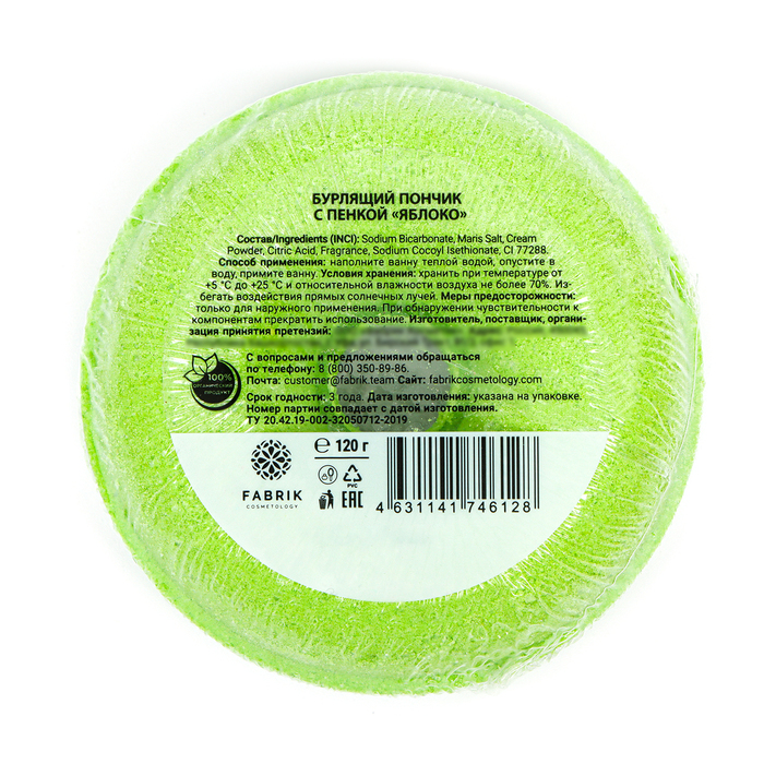 Бомбочка для ванн Fabrik Cosmetology с пенкой, яблоко, 120 г