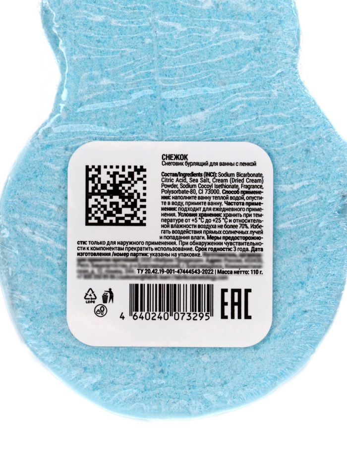 Новогодняя бомбочка для ванны с пеной «Снежок», 110 г