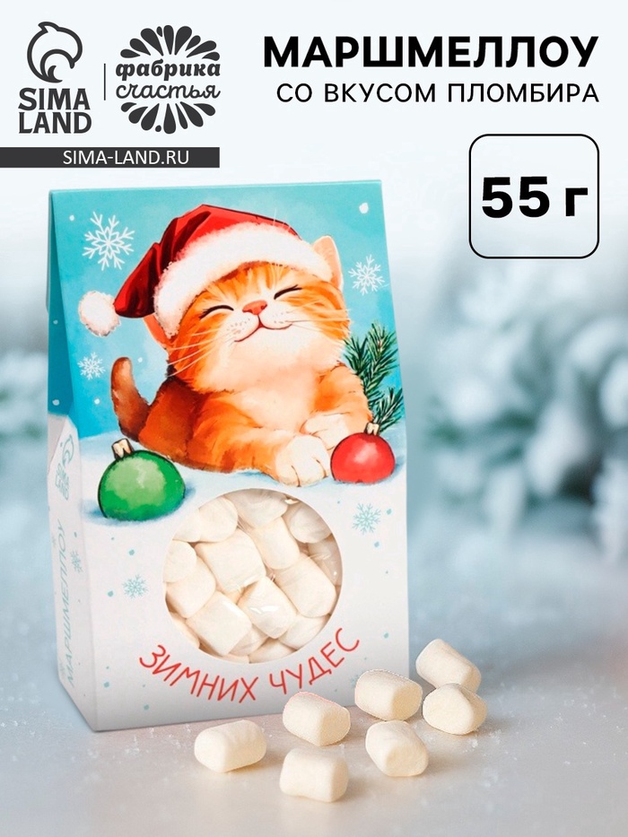 Маршмеллоу в коробке «Зимних чудес», со вкусом пломбира, 55 г