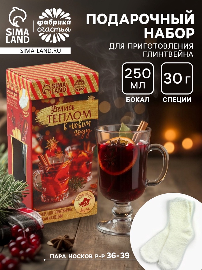 Составляющие набора: Бокал, Носки, Специи