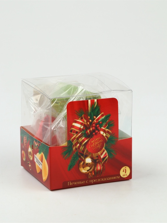 Печенье с предсказанием цветное в PVC-коробке «С новым годом», 4 шт.