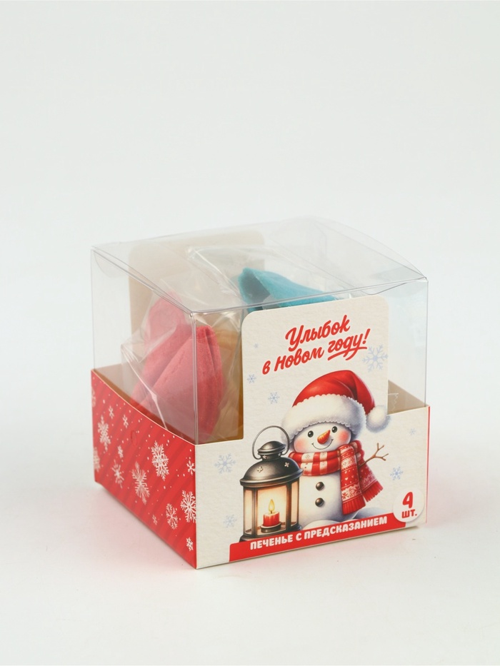 Печенье с предсказанием цветное в PVC-коробке «Улыбок в новом году», 4 шт.