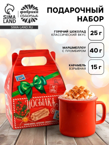 Подарочный набор новогодний «Ныряй в счастье»: маршмеллоу, вкус: пломбир, 50 г, горячий шоколад, вкус: орех, 75 г (25 г × 3 шт.).