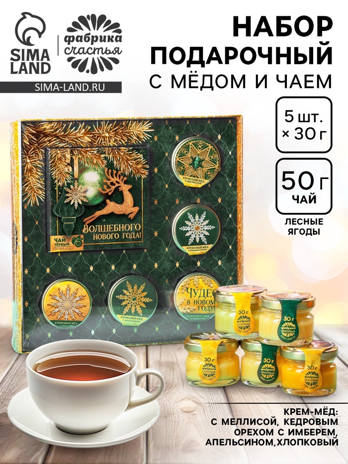 Подарочный набор новогодний «Волшебного нового года»: чай, крем-мёд