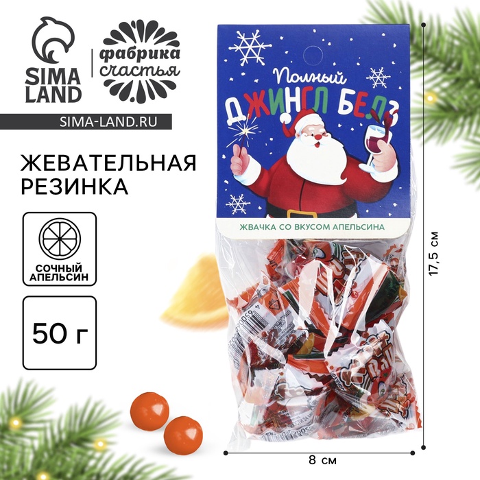 Жевательная резинка «Полный джингл белз» с начинкой и ароматом апельсина, 50 г