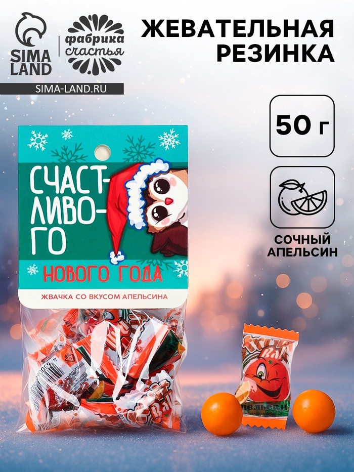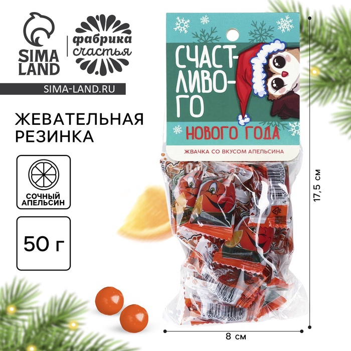 Жевательная резинка «Счастливого нового года» с начинкой и ароматом апельсина, 50 г