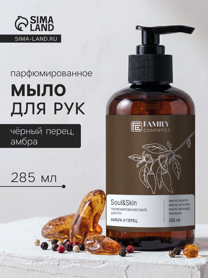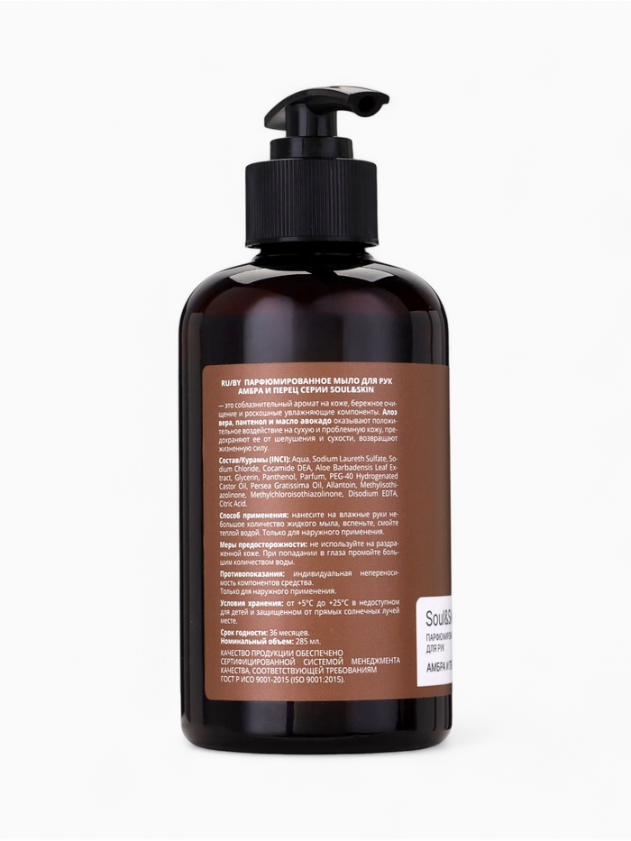 Мыло для рук парфюмированное Soul&Skin амбра и перец, 285 мл