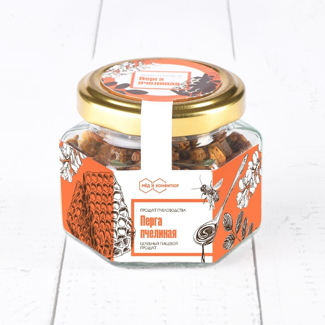 По сути - это цветочная пыльца, которую пчелы приносят в улей. Но все не так просто. Принесенную пыльцу пчелы обрабатывают секретом своих челюстных желез, а потом утрамбовывают в ячейки сот. Утрамбованная пыльца герметично закрывается медом, и под этим природным консервантом она в неизменном виде может храниться годами. Кроме того, готовые соты с медом и пергой пчелы запечатывают сверху восковой пленкой - забрусом. В этом природном контейнере перга может храниться практически без срока ограничения.