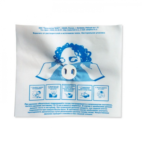 Устройство-маска п/э с обратным клапаном разового использования "Рот-Устройство-Рот" в индивидуальной упаковке. Представляет собой полиэтиленовую накладку с пластиковым мундштуком. Устройство стерильное, предназначено для оказания первой медицинской помощи в местах ДТП. Входит в комплект автомобильной аптечки. После использования подлежит утилизации. Подходит для проведения реанимационных мероприятий детям и взрослым.