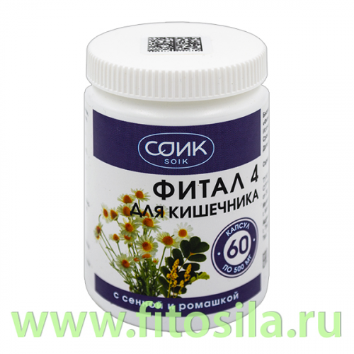 Фитал 4 ДЛЯ КИШЕЧНИКА с сенной и ромашкой 60 капсул по 500мг БАД "СОИК"