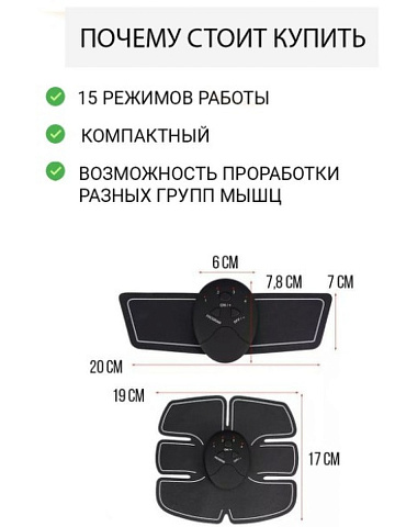 Привести свое тело в идеальную форму не прибегая к тренажерам можно с помощью миостимулятора. Электрический массажер Smart Fitness справится намного проще, чем вы могли представить. EMS trainer (электрический стимулятор мышц) изготовлен из высококачественных материалов. Миостимулятор для мышц абсолютно безопасен и эффективен. Стимулятор мышц поможет вам создать тело вашей мечты, даже не изнуряя себя тренировками. Просто закрепите электроды для миостимулятора на теле - и он будет работать без вашей помощи. Миостимулятор для живота имеет простой дизайн. Массажер для тела легкий в управлении. Компактный и портативный миостимулятор для пресса можно с легкостью взять с собой. Электростимулятор оснащен 15 уровнями интенсивности. Выполняя тренировки с миостимулятором для мышц EMS Trainer ежедневно, вы достигните желаемого результата.